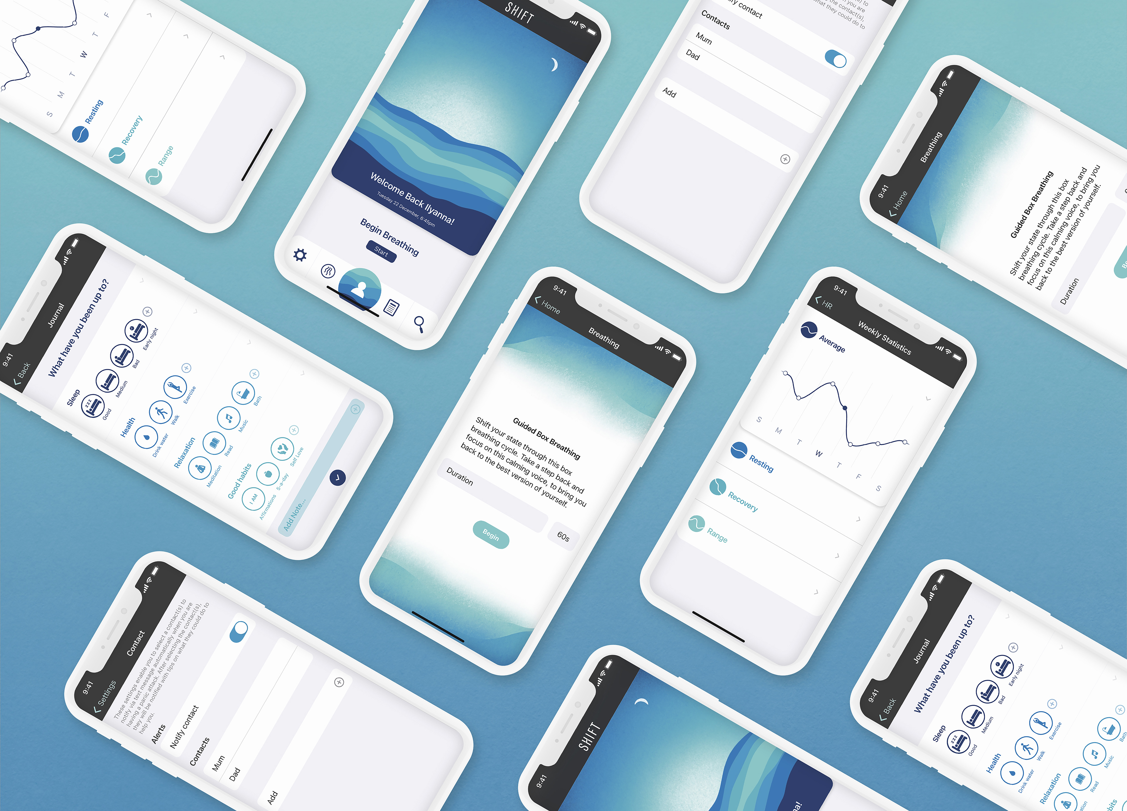 Shift is a product aimed to help male and female adults, aged between 18-65, who suffer from anxiety and/or panic attacks. The product is an Apple application targeted towards both iPhone and iWatch users who are looking for a way to help themselves and prevent or minimise future attacks. The aim of this product is to help the user recognise their anxiety and panic attack triggers, to teach them ways to control attacks, provide them with tools to help them prevent them and with access to necessary support.